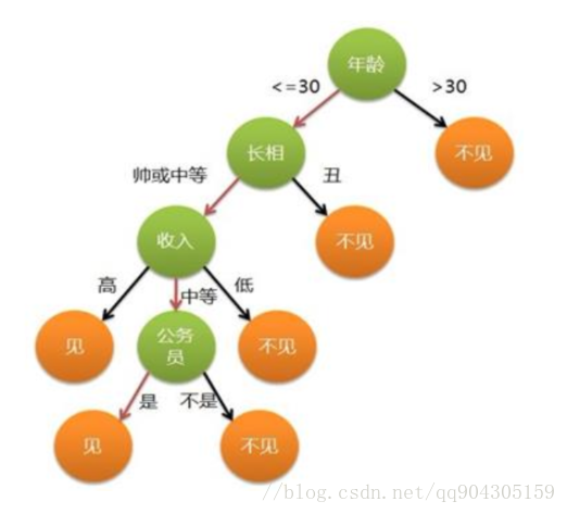 决策树(decision tree)是一种常见的机器学习方法,其实在生活中我们已经用到了决策树相关的知识,比如说,女生相亲时的想法就是决策树的一种体现: