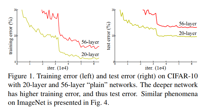 - 容易优化,其他建档叠加网络层数有很大的训练误差,也就是下图中所表现的 20 层和 56 层的训练误差